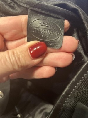 Black Longchamp tote bag featuring leather trim and handles.