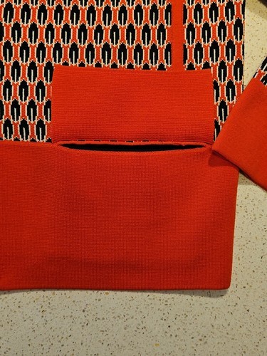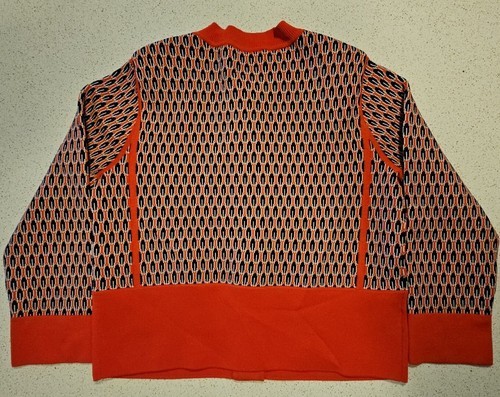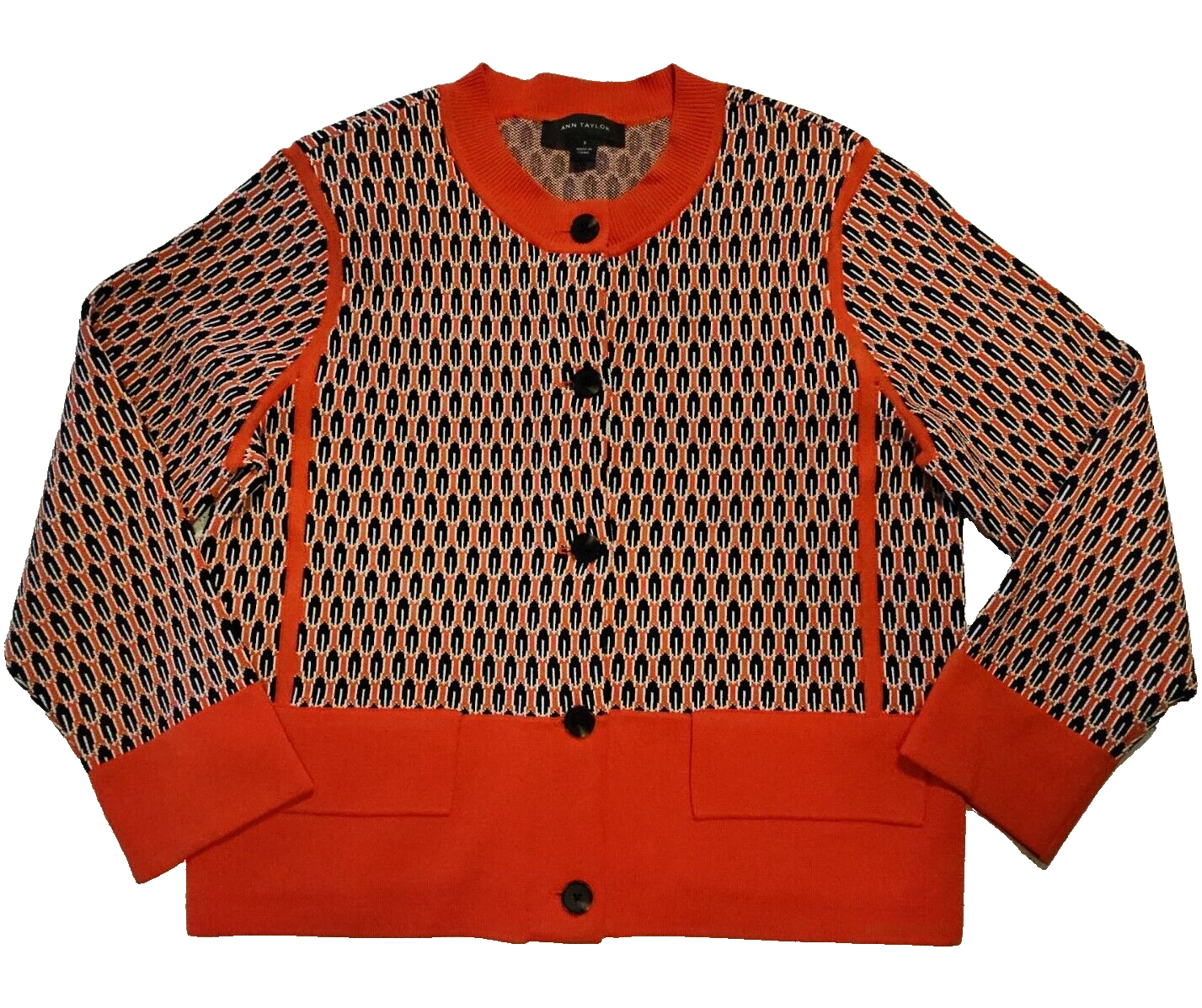 Ann Taylor Retro Geo Print Sweater Womens Small Coral 3/4 Sleeve Jacket Cardigan