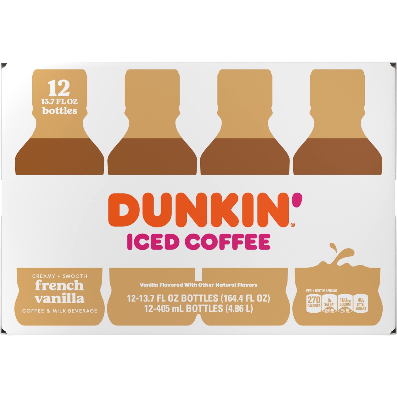Dunkin Donuts Iced Coffee, French Vanilla, 13.7 Fluid Ounce (Pack of 12)