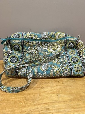 Vintage Vera Bradley 17” Travel Weekender duffle bag Peacock Pattern Green Blue