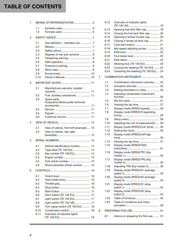 HUSQVARNA 2024 - TE 150 - OWNERS MANUAL - REPRINTED COMB BOUND