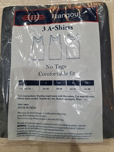 Hangout Mens A-Shirts Black Grey White 3 Pack Size L Muscle Shirt