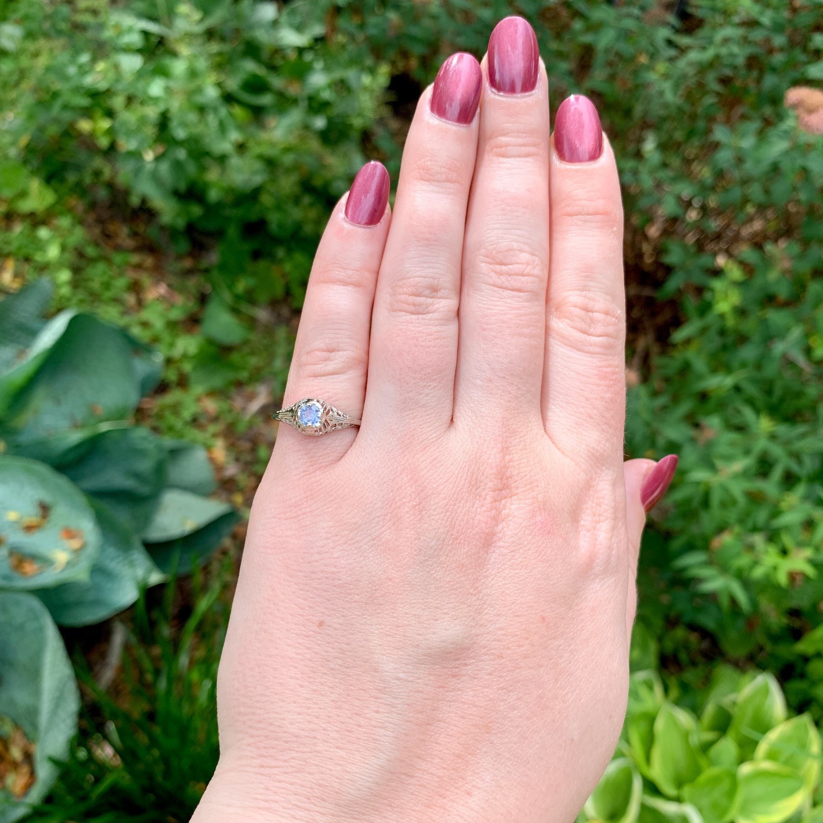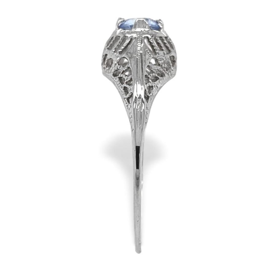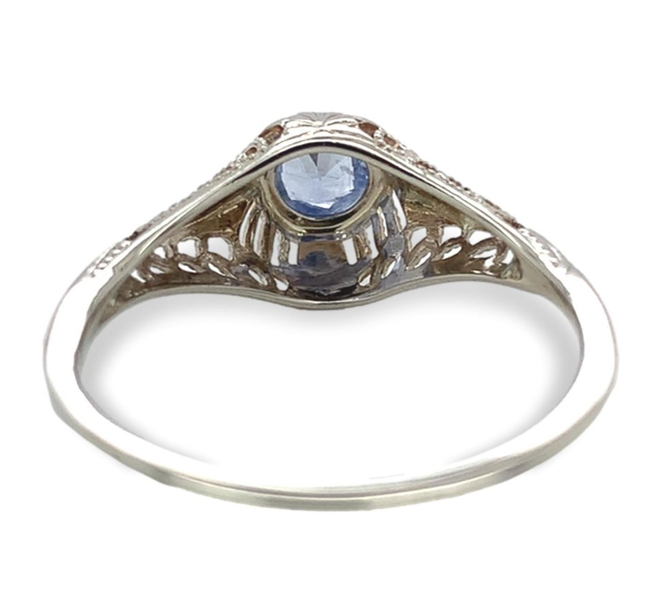 Art Deco 14k White Gold Filigree .29ct Sky Blue Genuine Sapphire Ring (#J7472)