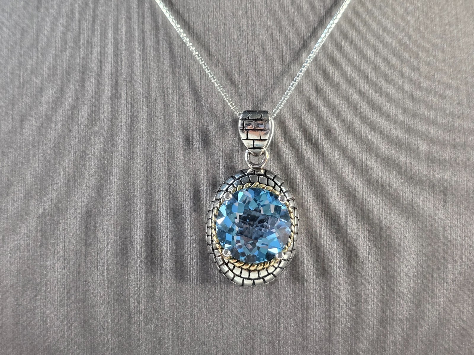 A WOMENS VINTAGE ESTATE STERLING SILVER AQUA COLORED MODERNIST PENDANT NECKLACE. THE TOTAL WEIGHT IS 11.2g. NECKLACE IS 18" LONG, AND THE PENDANT IS 1 1/4" BY 5/8". NOT SURE IF THE STONE IS NATURAL OR MAN MADE. MAKES A GREAT GIFT FOR THAT SPECIAL SOMEONE. ANY QUESTIONS PLEASE DONT HESITATE TO ASK. BE SURE TO CHECK OUT SOME OF MY OTHER GREAT ITEMS UP FOR SALE. THANK YOU.