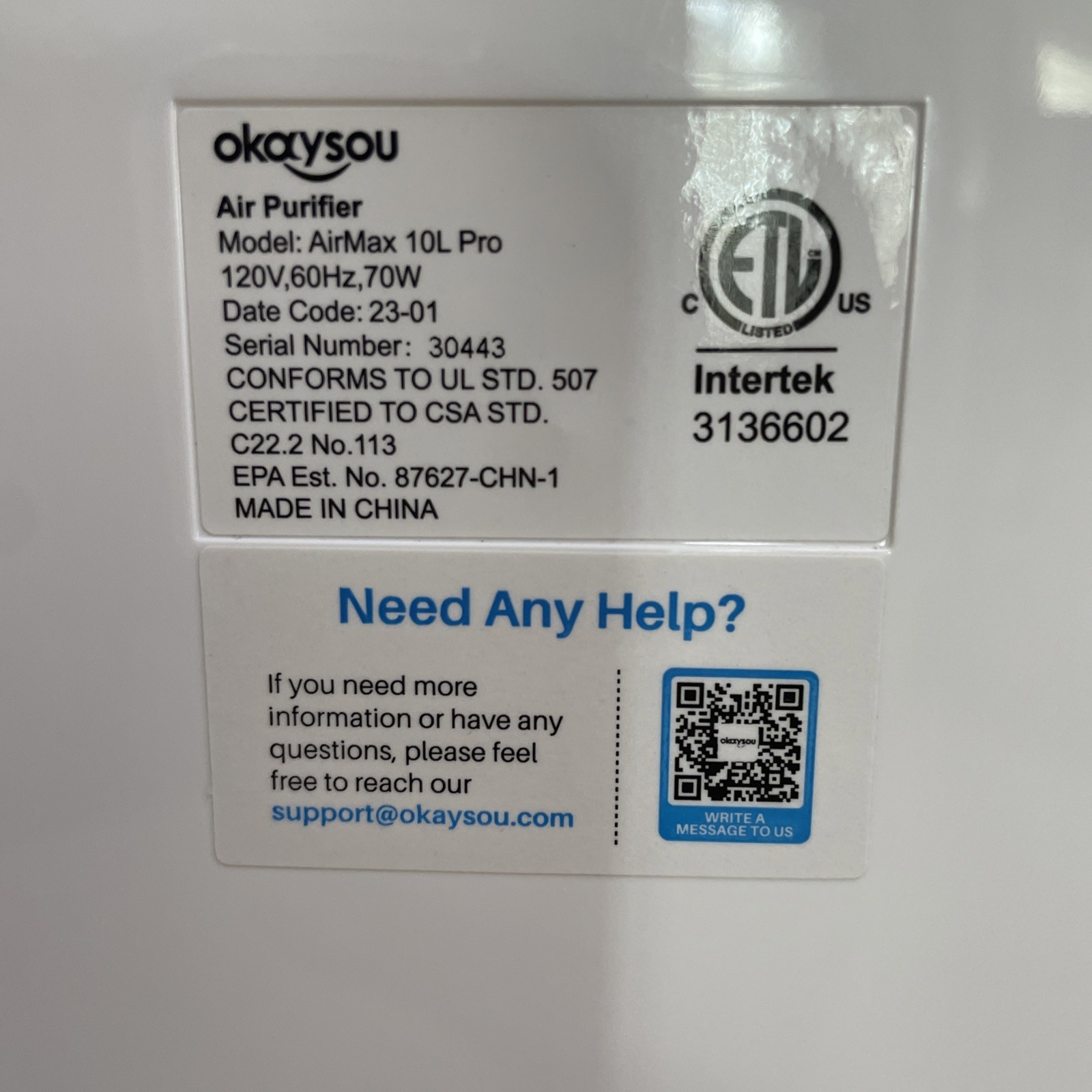 Energy Efficient HEPA Air Purifier 5-Stage Filter OKAYSOU AirMax 10L Pro