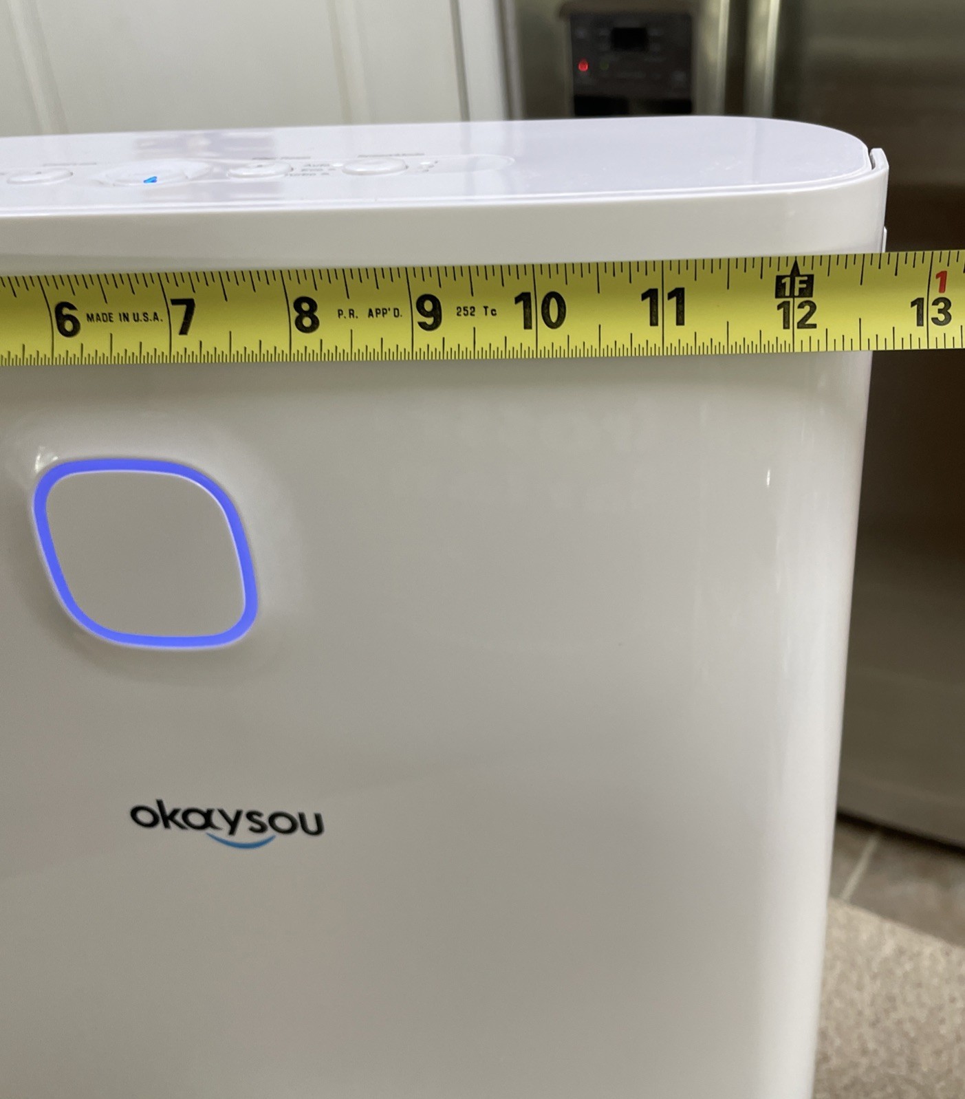 The OKAYSOU AirMax 10L Pro is a white tower-style HEPA air purifier designed to efficiently filter out impurities and allergens from the air in your home. With a 5-stage filter, this air purifier can effectively clean the air in spaces up to 500 square feet. It features a touch control method, digital display, and a variety of useful features such as a 3-speed setting, timer, filter replacement indicator, and child lock. This energy-efficient air purifier is easy to use and maintain, making it a convenient and reliable option for improving indoor air quality.
