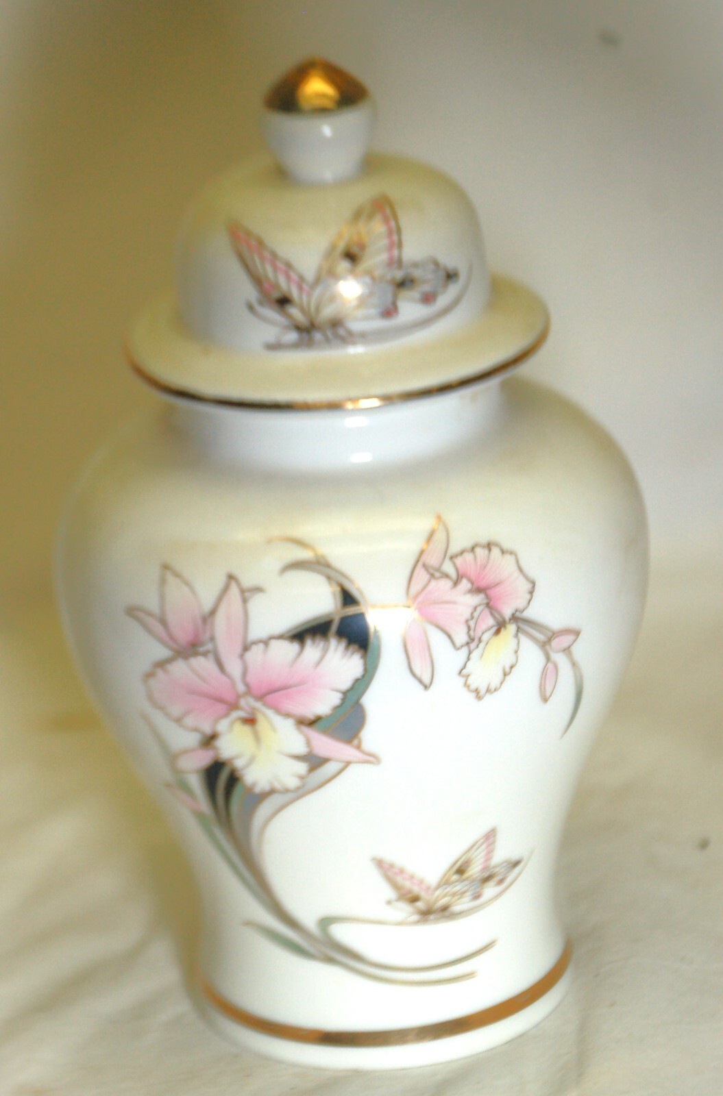 Porcelain Floral Temple Ginger Jar Gold Accents Japan