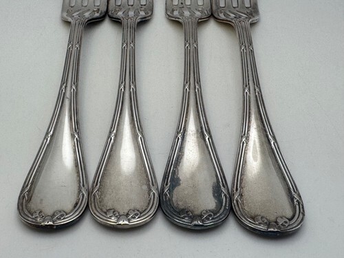 Set of 4 Christofle France Silverplate RUBANS Dinner Forks