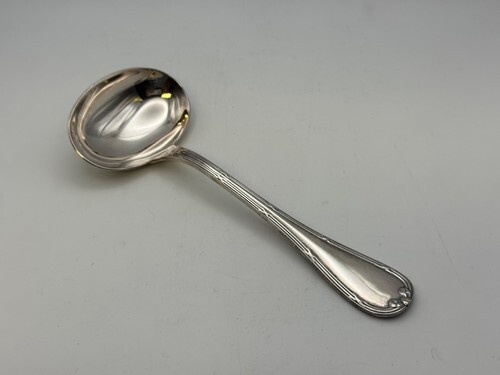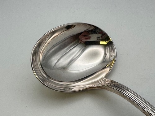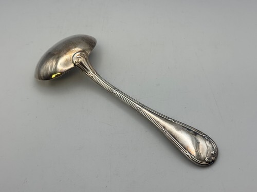 This gravy ladle measures 7" in length and is in very good estate condition with no excessive wear. It has some tarnish and could use a polish.