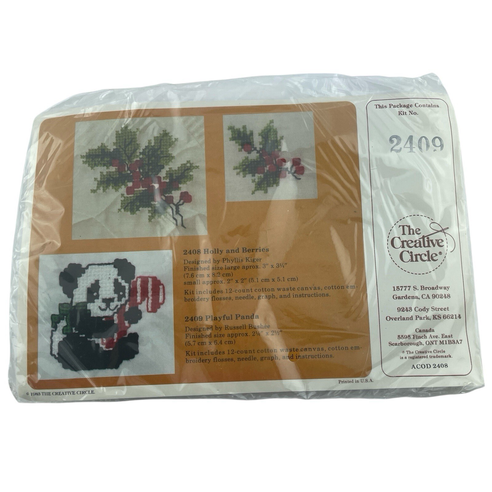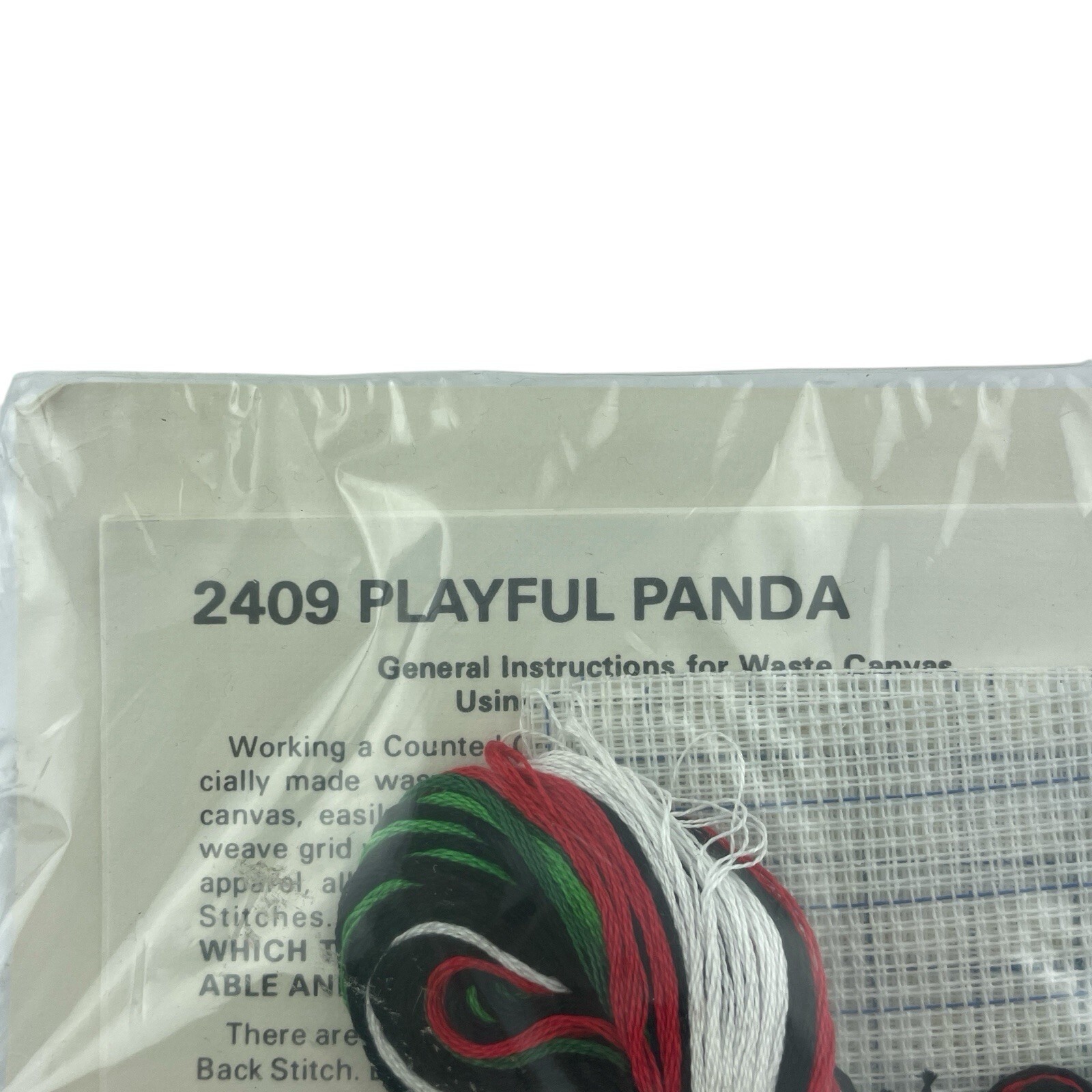 Creative Circle Cross Stitch Kit 2409 Playful Panda Holding Candy Cane Vintage