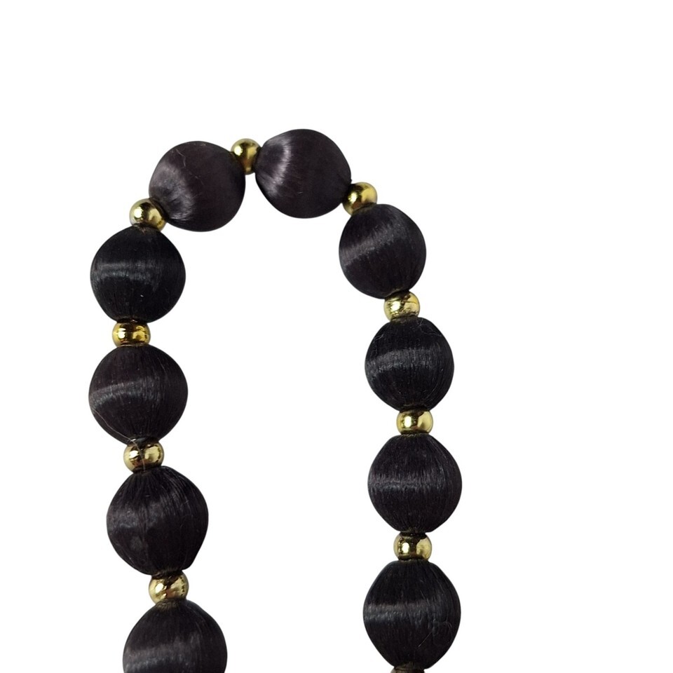 Handmade Thread Wrapped Black Bead Necklace Gold Spacers Boho Chic Jewelry