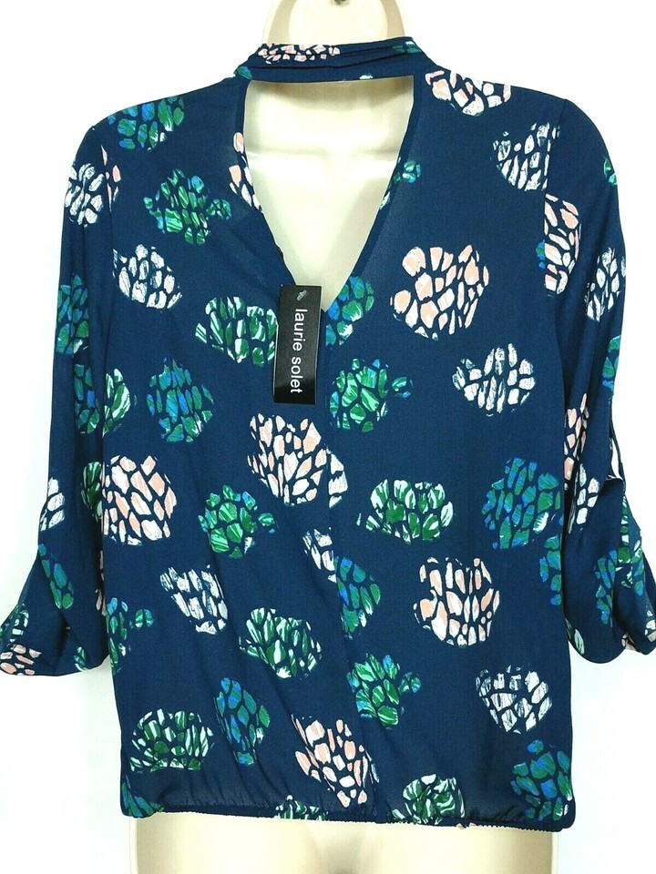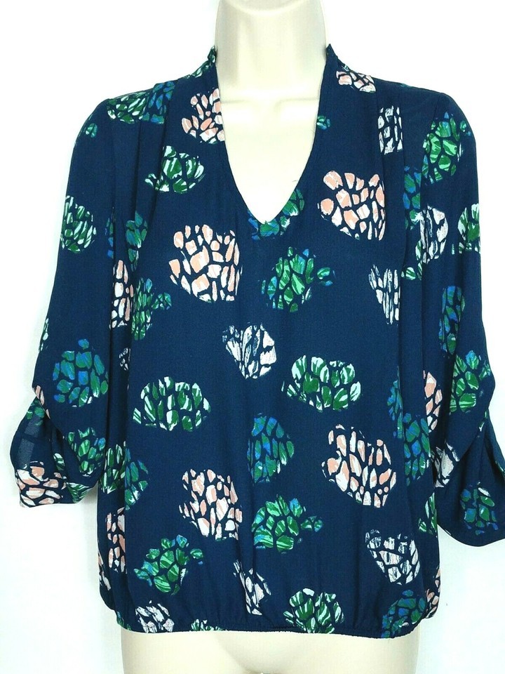 NWT Dragonfly Womens Floral Blouse Top Size XS Blue Plunge Neck Long Sleeve