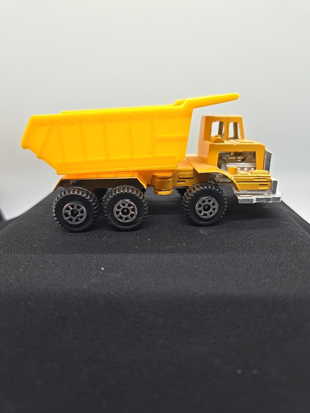 The Tootsietoy Heavy Duty Dump Truck is a 4" die-cast scale model construction equipment toy perfect for both boys and girls. Made by TootsieToy in China, this yellow dump truck is sure to provide hours of imaginative play. With its sturdy die-cast material, this toy is durable and can withstand endless construction projects. Perfect for young builders and truck enthusiasts alike, this heavy-duty dump truck is a versatile and fun addition to any playtime.