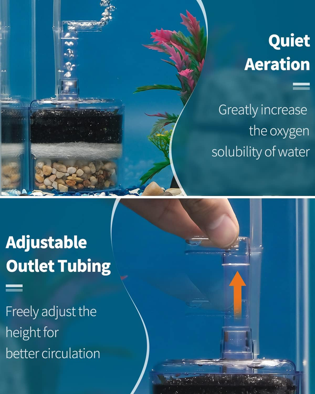 Quiet Aeration: Air powered and cause no disturbance to your daily life. The outlet tubing is freely adjustable in height and the duck-billed outlet port brings more bubbles to promote oxygen circulation.