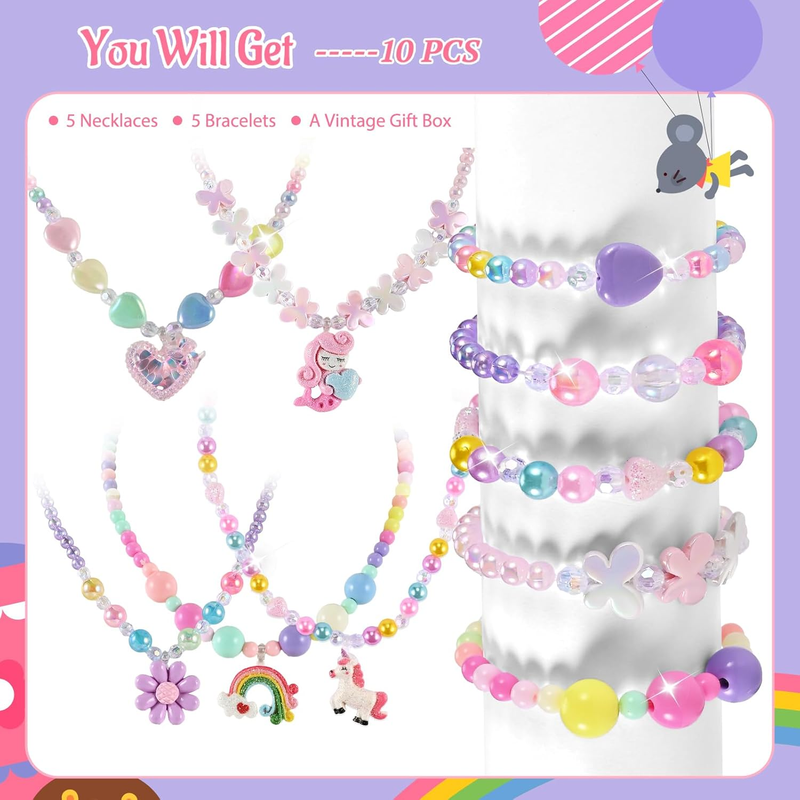 10Pcs Kids Jewelry for Girls -5 Necklaces, 5 Bracelets, Little Girls Jewelry Kid