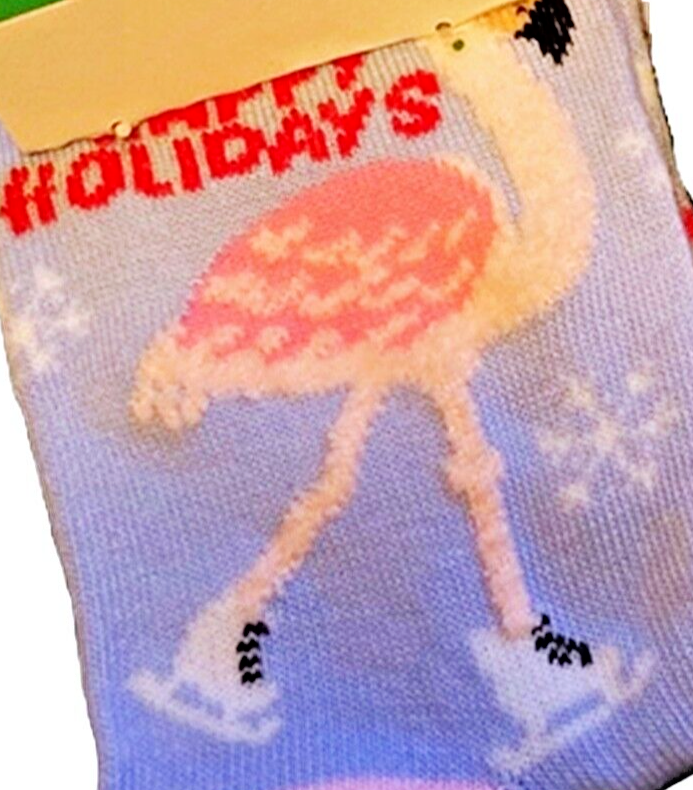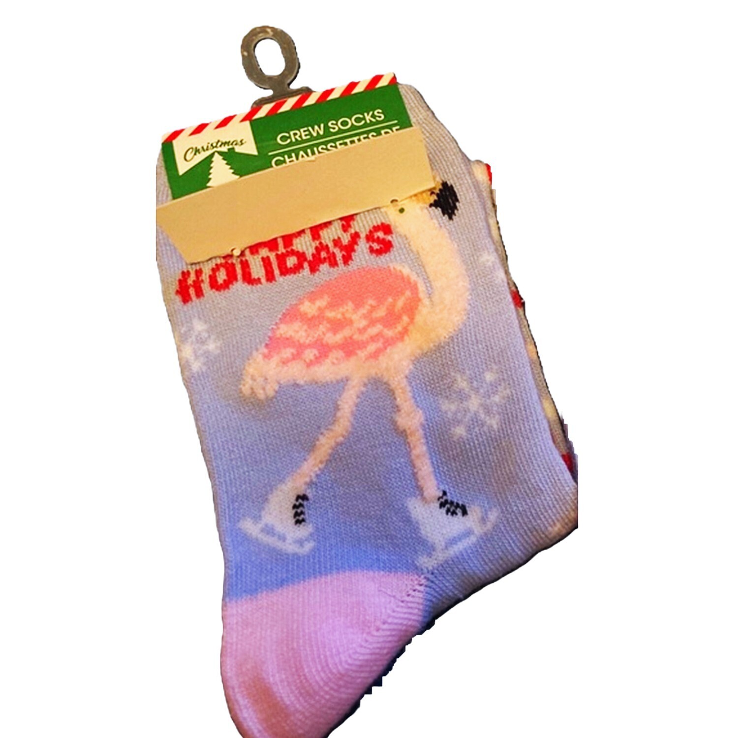 Funky Ice Skating Skater PINK FLAMINGO CREW SOCKS Happy Holidays Winter Theme