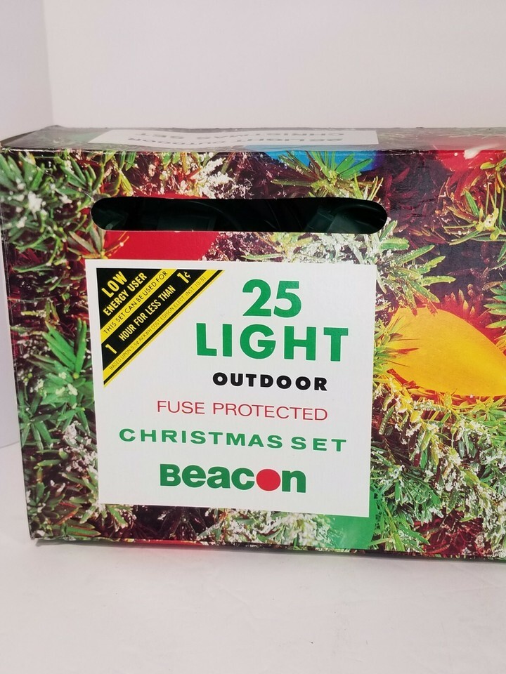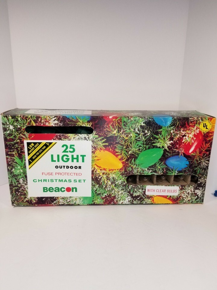 Beacon Christmas Light Set Outdoor 25 Lights Clear Bulbs New Open Box.