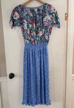 Vintage Diane Freis Georgette Maxi Dress Smocked Waist floral ruffle Beaded