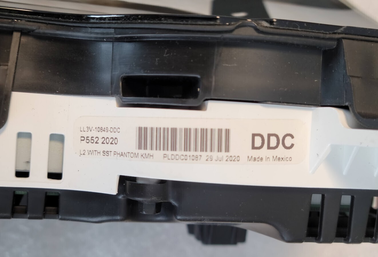 This is one possible factory original Ford F150 Raptor gauge cluster. It is the version with 8" screen and has never been installed or programmed. (0 on the odometer!) The primary units display as metric (KMH, for example) but it also shows imperial units (MPH) in smaller font on the speedo. There are cluster companies who can convert it to show MPH as the primary font and display type, if it bothers you. It is engineering number LL3V-10849-DD_. (DDA, DDB, DDC, etc. DDA through DDZ interchange.) KL3V-10849-DD_ are also interchangeable.