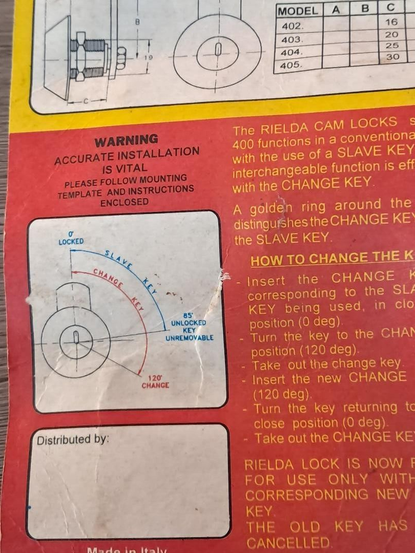 Nockenschloss RIELDA 400 mit 3 Schlüsseln.
