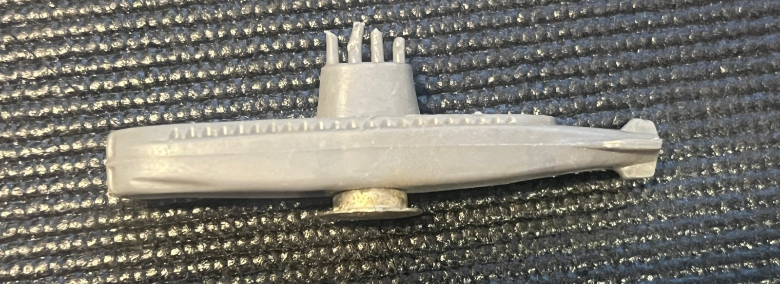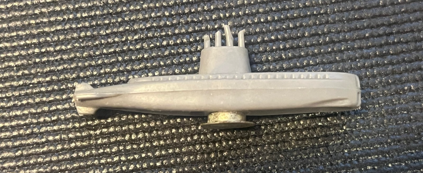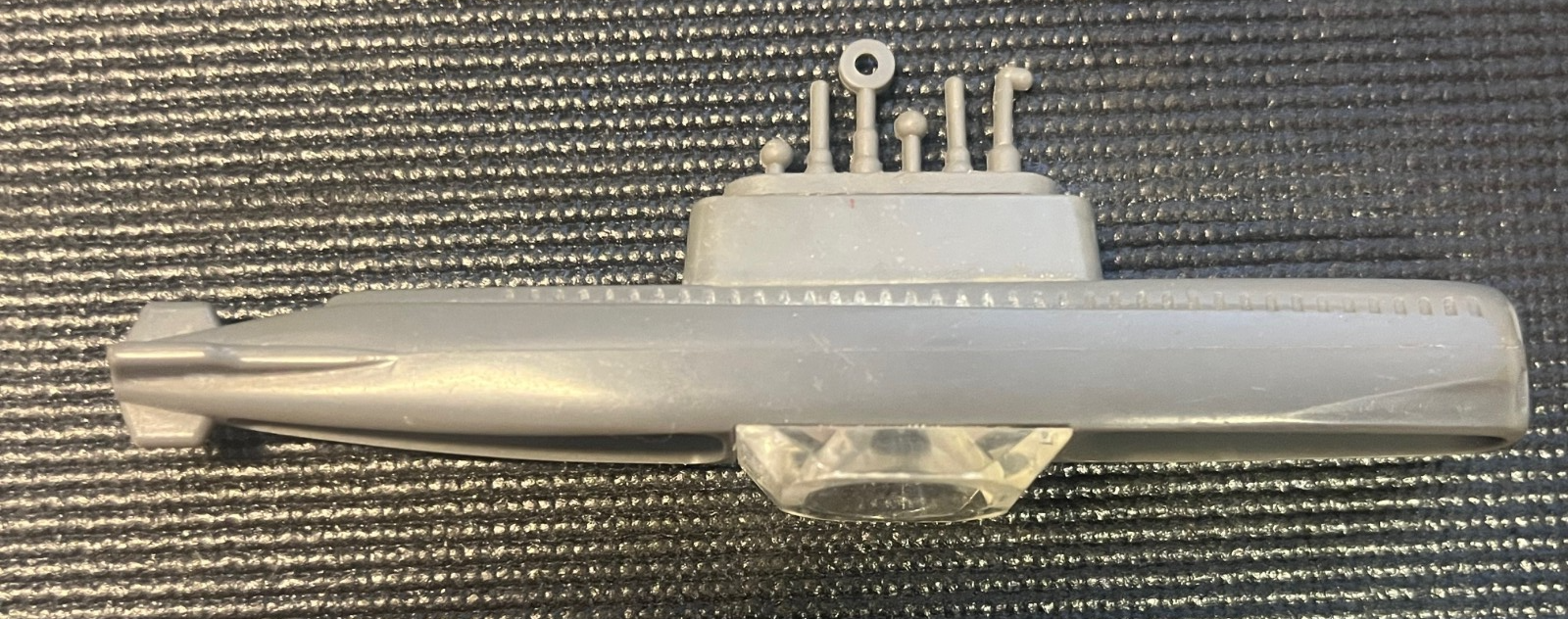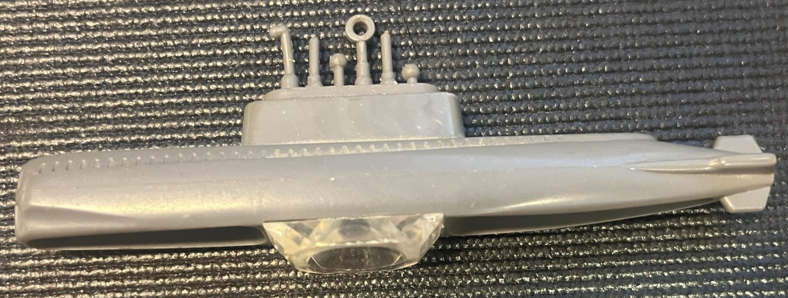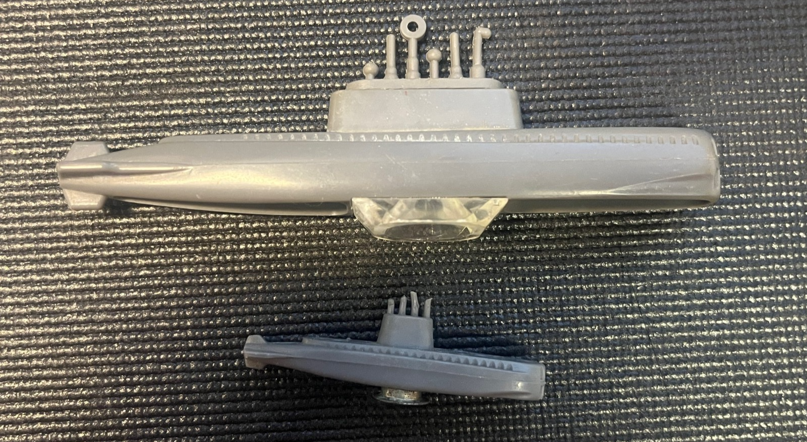 Pair of vintage submarine toys including an Operating Model of the atomic-powered U.S.S. Nautilus SSN-571 and a small Baking Powder Submarine cereal premium. Both are loose ? no boxes, no instructions.