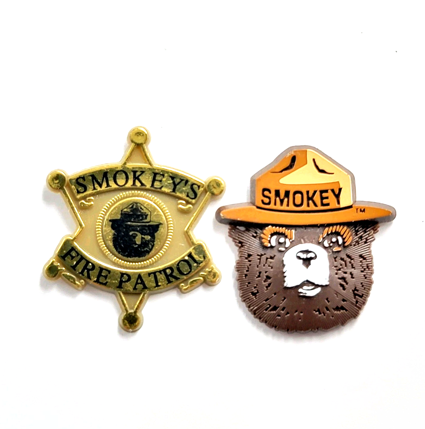 Vintage Smokey Bear Fire Patrol & Ranger Hat Pins Lot 2 Forest Fire Prevention