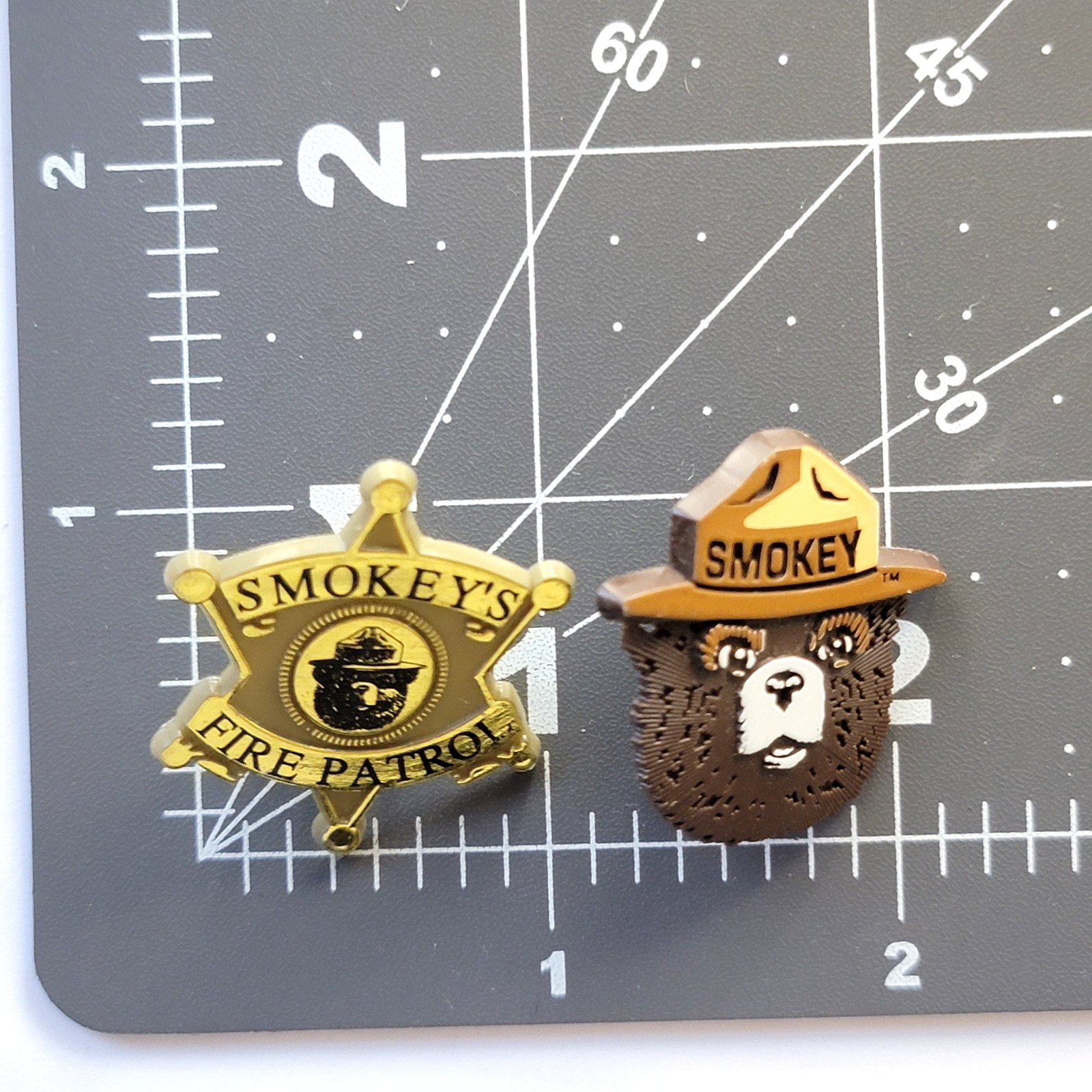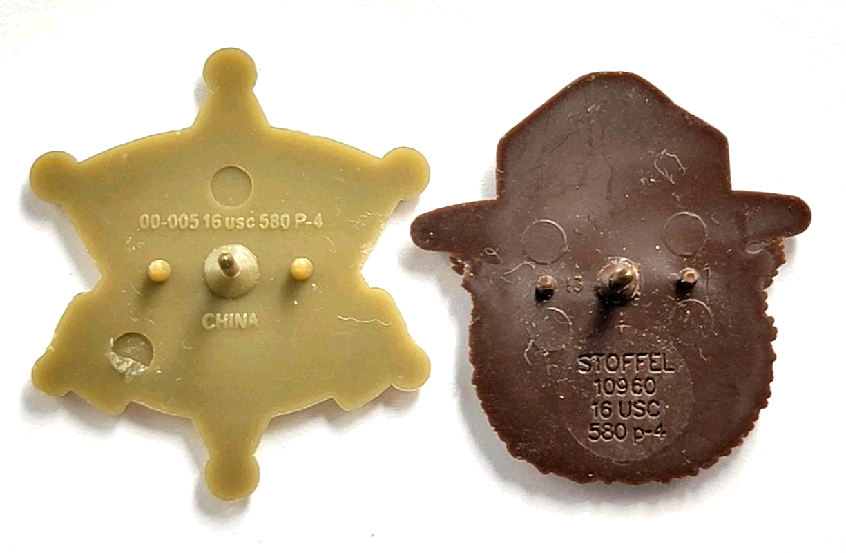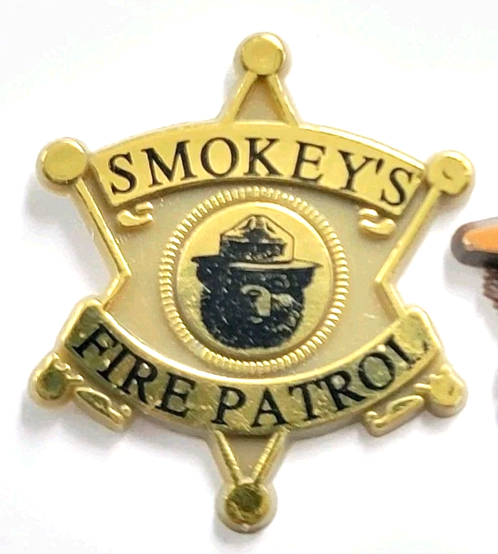 Lot of 2 Smokey Bear Pins Fire Patrol Sheriff Badge Face