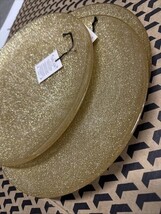 The Art Tabletop AKCAM Gold Glitter Sparkle Glass Dinner Plates S/3 -New~