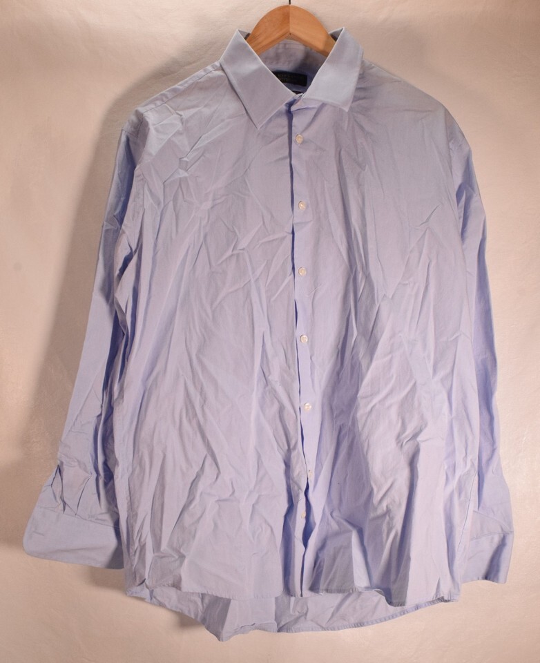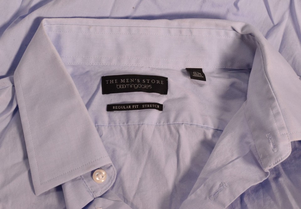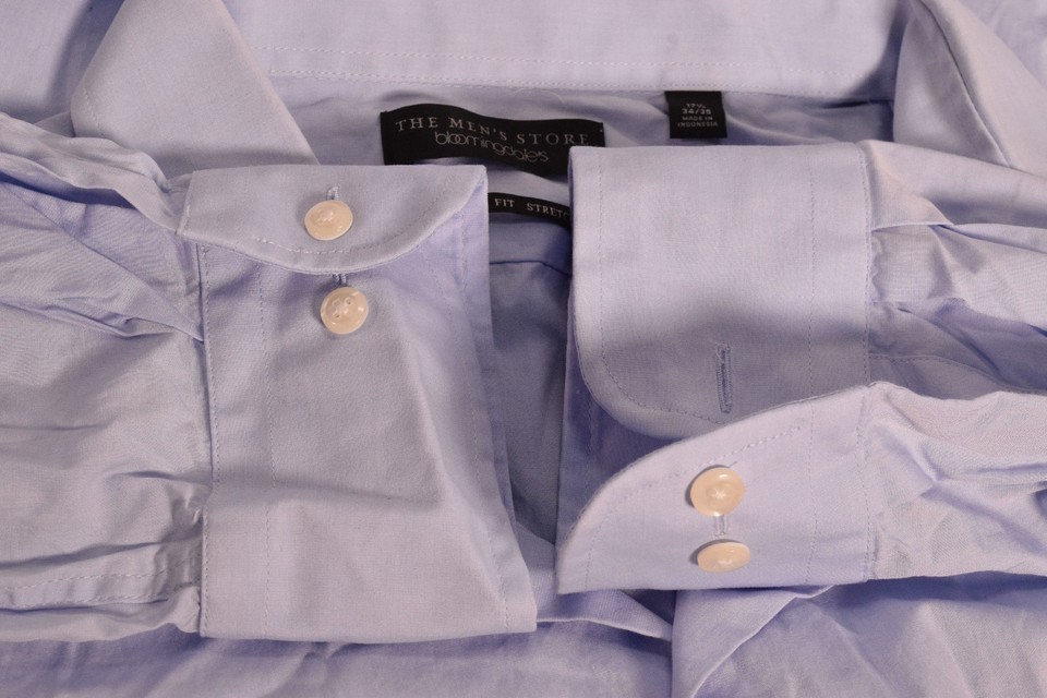 Bloomingdales Mens Regular Fit Stretch Shirt Blue 17 1/2 34/35