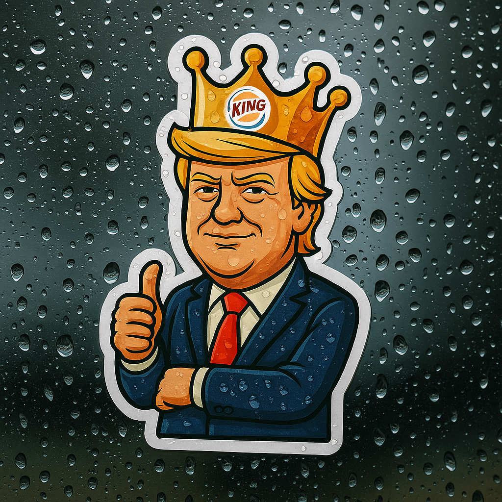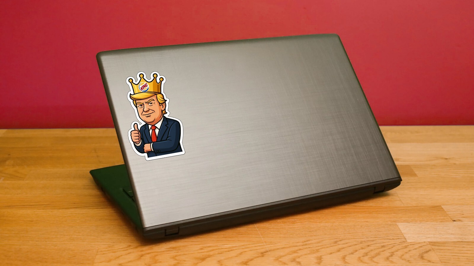 StickerDad Trump King 1023 ? Funny Full Color Printed Vinyl Sticker (Size: 5?, Color: Full) ? Perfect for Windows, Walls, Bumpers, Laptops, Lockers More Product Description: Rule your space with confidence and humor with the StickerDad Trump King 1023 decal ? a bold, conversation-starting design that?s sure to stand out anywhere you place it! Featuring a vibrant full-color illustration of Trump wearing a gold B K?style crown, this sticker combines high-quality printing with durable performance to deliver a design that?s both eye-catching and long-lasting. Crafted from premium outdoor-grade vinyl, this 5-inch sticker is waterproof, UV-resistant, and fade-proof, making it perfect for cars, toolboxes, laptops, windows, or any smooth surface that needs a touch of attitude. Whether you?re a collector of funny decals or just want to add some personality to your ride or workspace, this sticker gets the job done with style. Make a statement that?s equal parts funny, bold, and unforgettable with the StickerDad Trump King 1023 decal ? because every king deserves his crown! ?