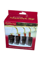 Brand new set of four The Mantle Clips. The original Mantle clip. The best way to hang stockings lights and Garland. Four clips. Hang stockings and decorations, strings, lights or Garland. Sturdy metal construction. Grippers hold tight and mantle surface.