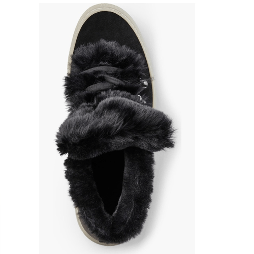 Leather and textile faux-fur upper/textile lining/rubber sole