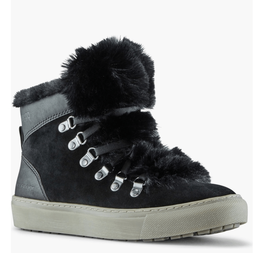 Faux-fur trim adds an element of Arctic character to a short lace-up boot that's waterproof, cozy and traction-enhancing.