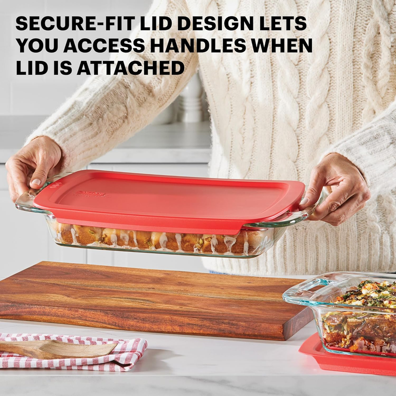SNUG FIT LIDS: Plastic lids fit snugly over glass baking dishes to keep your food fresh. BPA-free plastic lid is freezer, microwave and top-rack dishwasher safe.