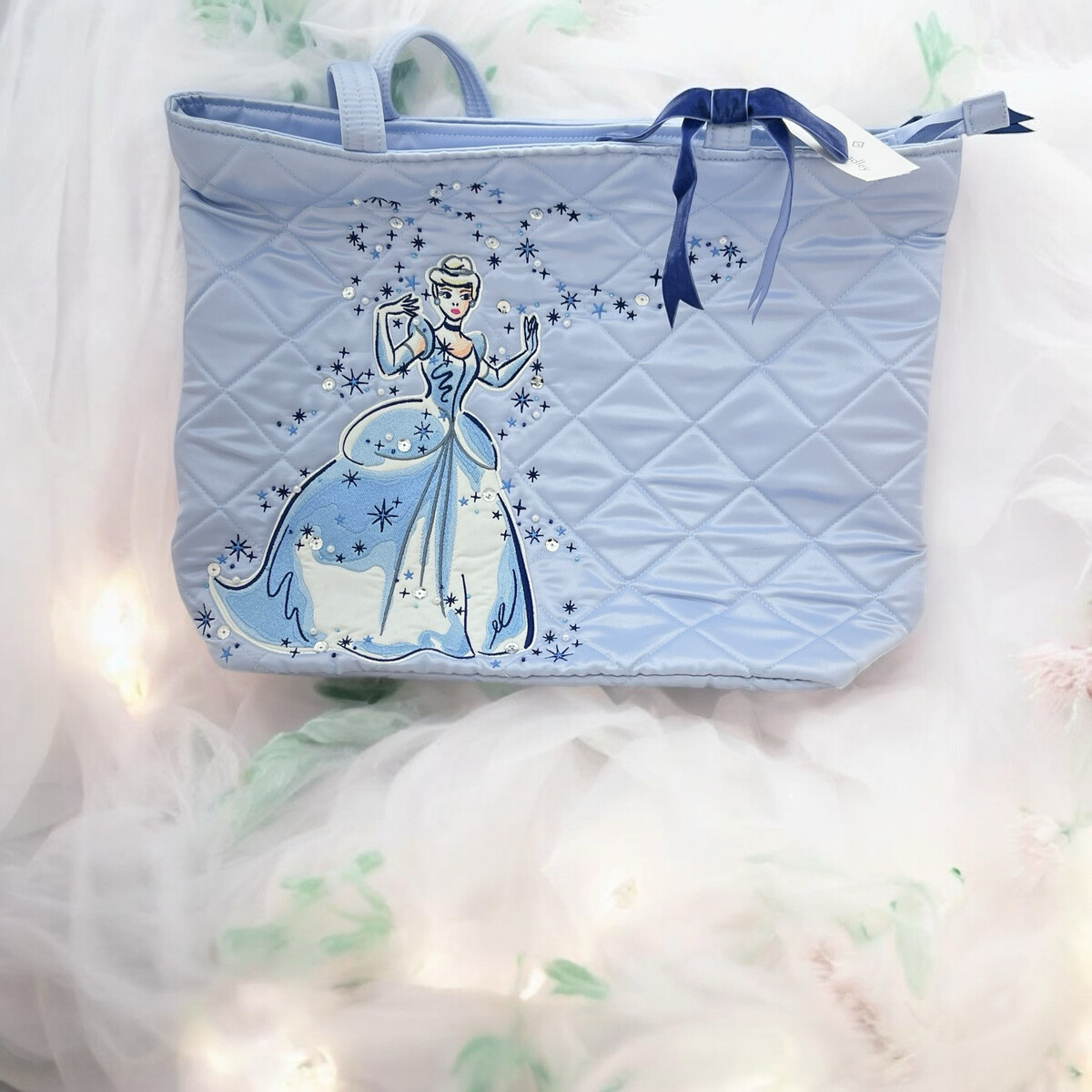 Disney Vera Bradley Cinderella Quilted Tote Bag – Blue with Sequins & Embroidery