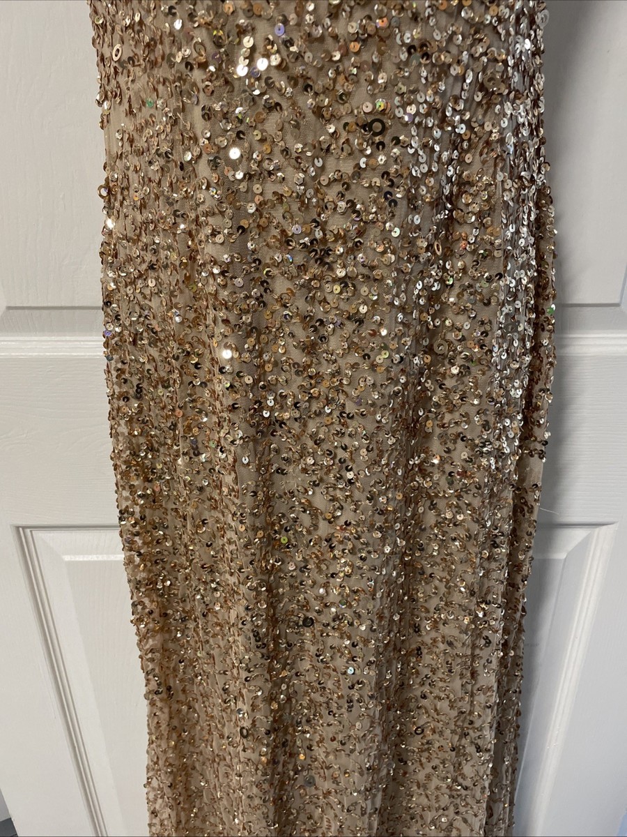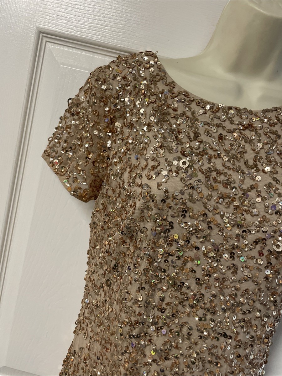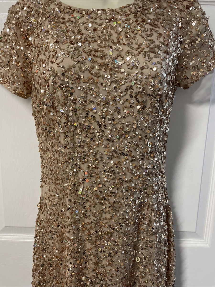 Adrianna Papell Gold Sequined Shift Ankle Length Dress Woman's Size 6 KG JD