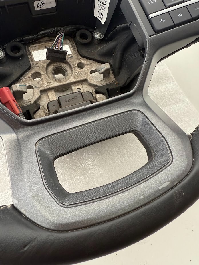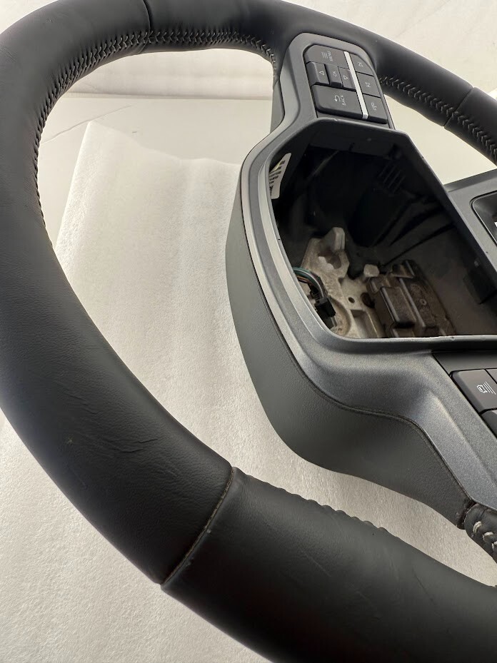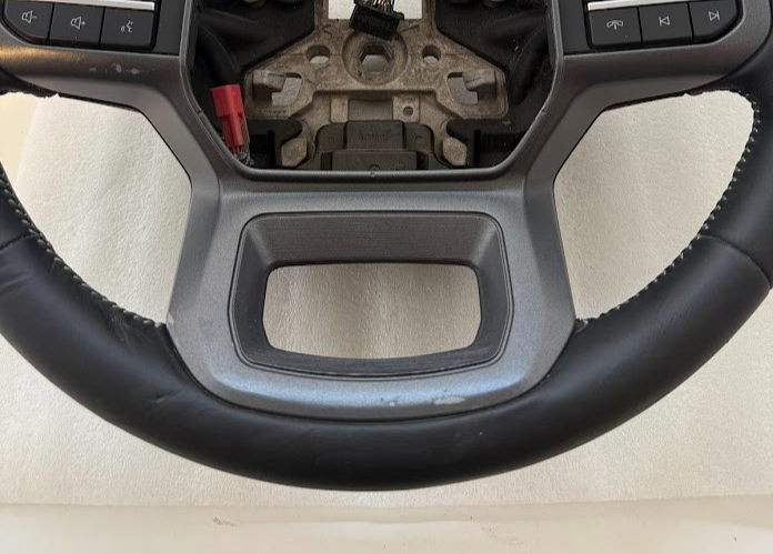 OEM black leather steering wheel for some Ford F-150 2021-2024. Blemished