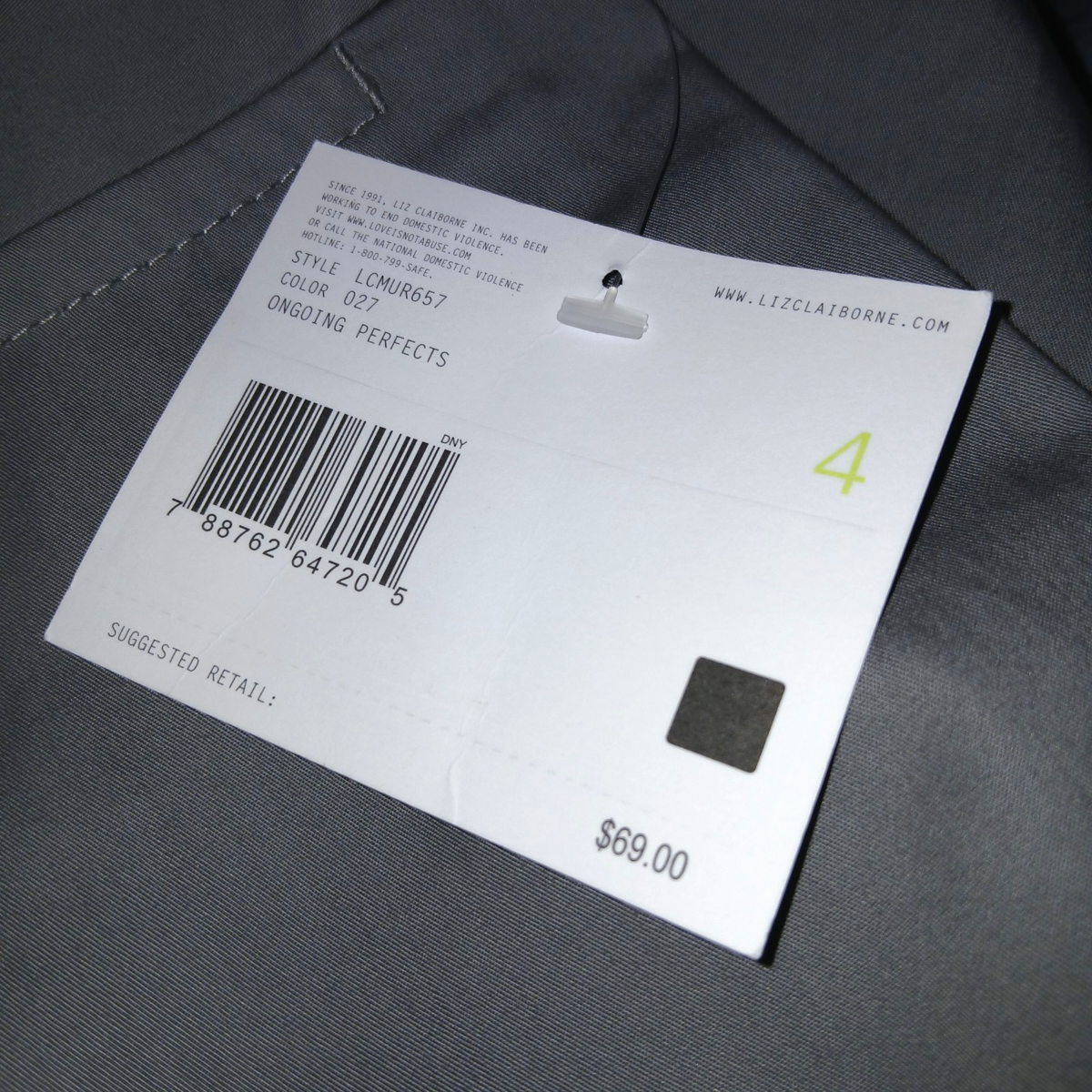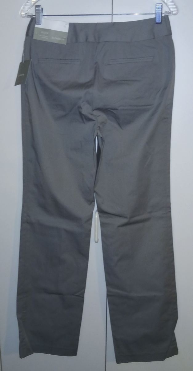 THIS IS A GREAT PAIR OF LADIES LIZ CLAIBORNE "AUDRA" GRAY 100% COTTON STRAIGHT LEG PANTS IN A SIZE 4. THEY ARE NEW, WITH TAGS ATTACHED AND PRICE TAG OF $79.