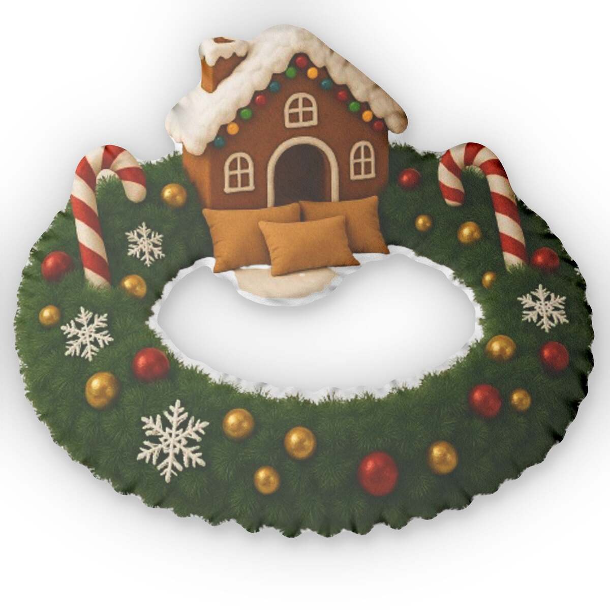 Gingerbread Christmas Lounger Wreath Pillow, Holiday Decor, Festive Decorative