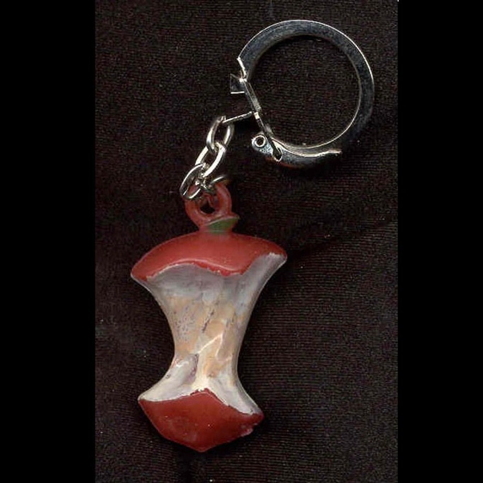 Retro APPLE CORE KEYCHAIN Vintage Food Fruit Charm Funky Novelty Jewelry-HUGE