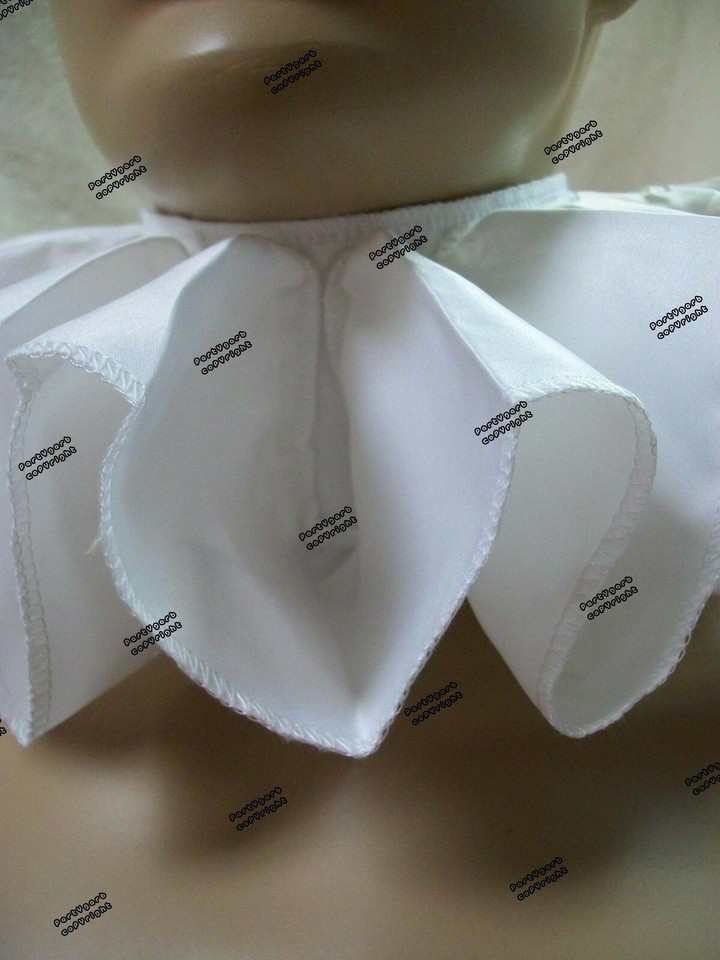 Renaissance Themed Costume Collar. This one looks a little off white compared to some other whites. Has fabric ties one on top and one on bottom. Approx. 2.75" wide from top to bottom. Well Made. The fabric is kinda smashed in some places and may have some wrinkles or creases from being in package. It may need some shaping / adjusting before wear. Unisex: Male or Female.