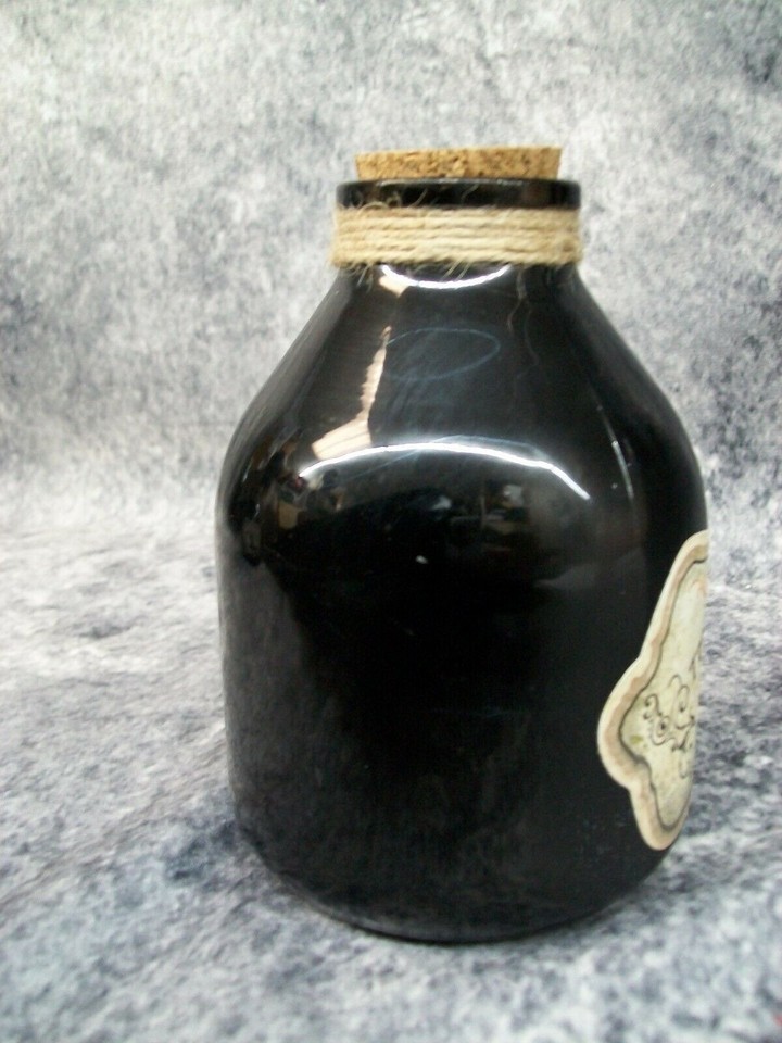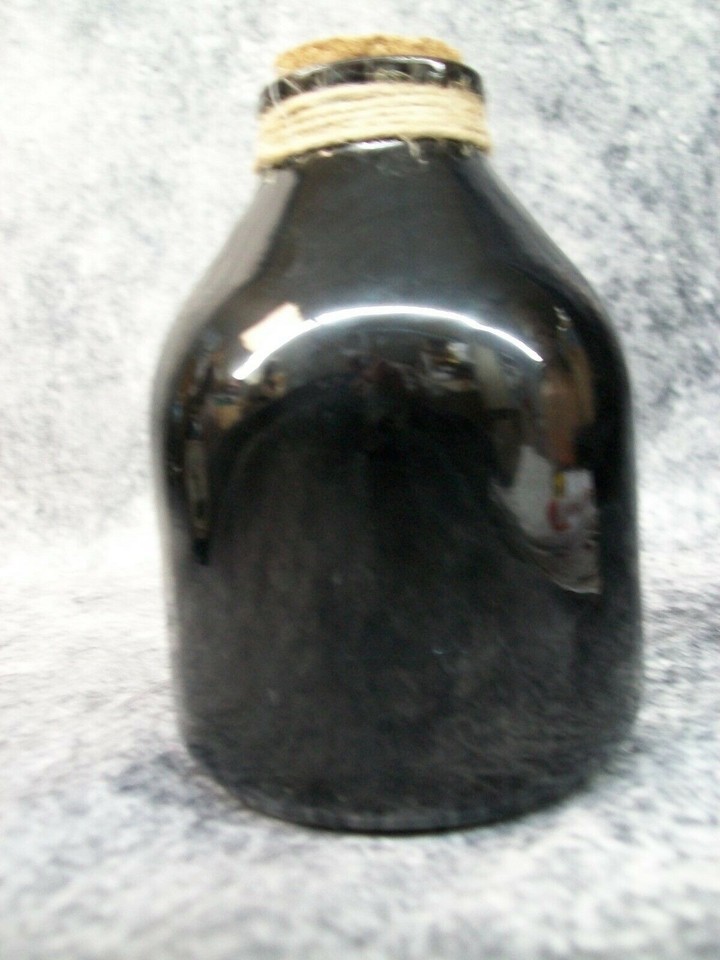 Small Black Growler Potion or Elixir Jug with Cork Plug / Stopper. Cork feels like it is glued. Short Stubby Bottle. Looks and feels like glass. Not for food use. For decorative purposes only. Can be a handheld prop or used as a Halloween Prop or Decoration. For Adult Use. Unisex: Could be used with Male or Female themed Costumes. Great Roleplaying or Halloween costume accessory idea for: Witches Brew Ingredients, Dark Magic, Black Magic, Wizard, Mysterious Witch, Warlock, Sorcerer, Sorceress, Medieval Gypsy, Witch Doctor, Medieval Apothecary, etc.