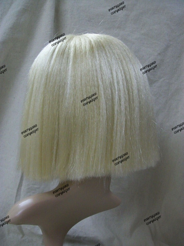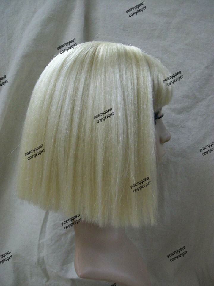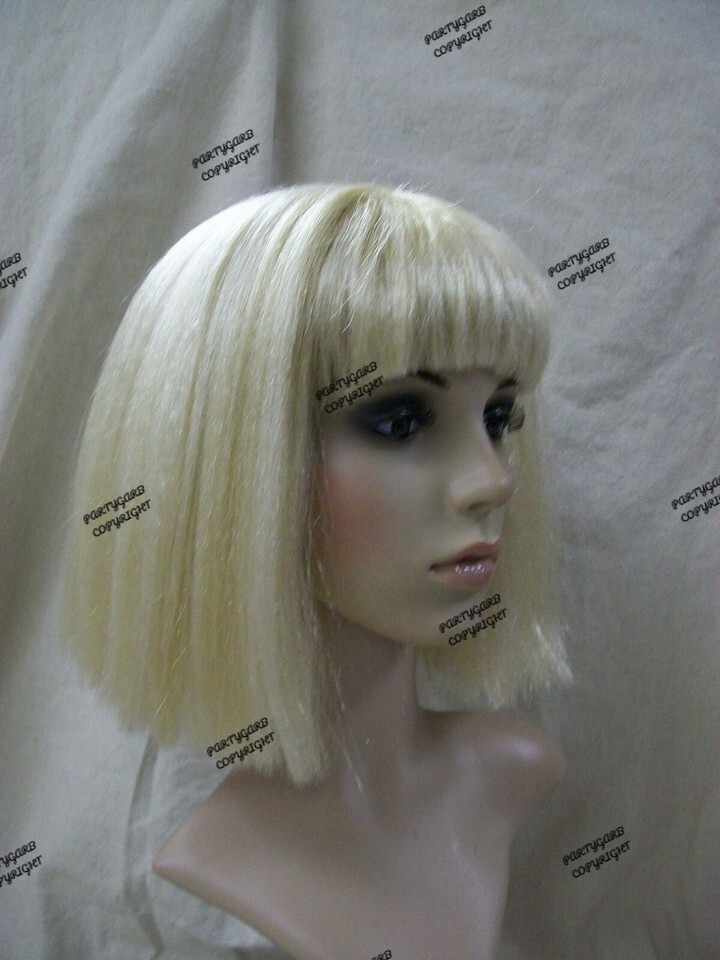 Blonde Coquette Wig Blunt Bob w/ Bangs Albino Egyptian Queen of Nile 70s Mod Gal