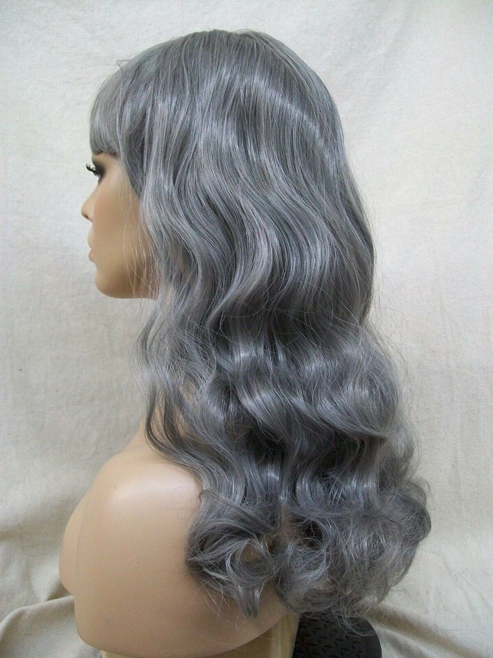Gray Wavy Wig w/ Bangs Heat Style Ghost Spirit Elegant Witch Sorceress Old Lady