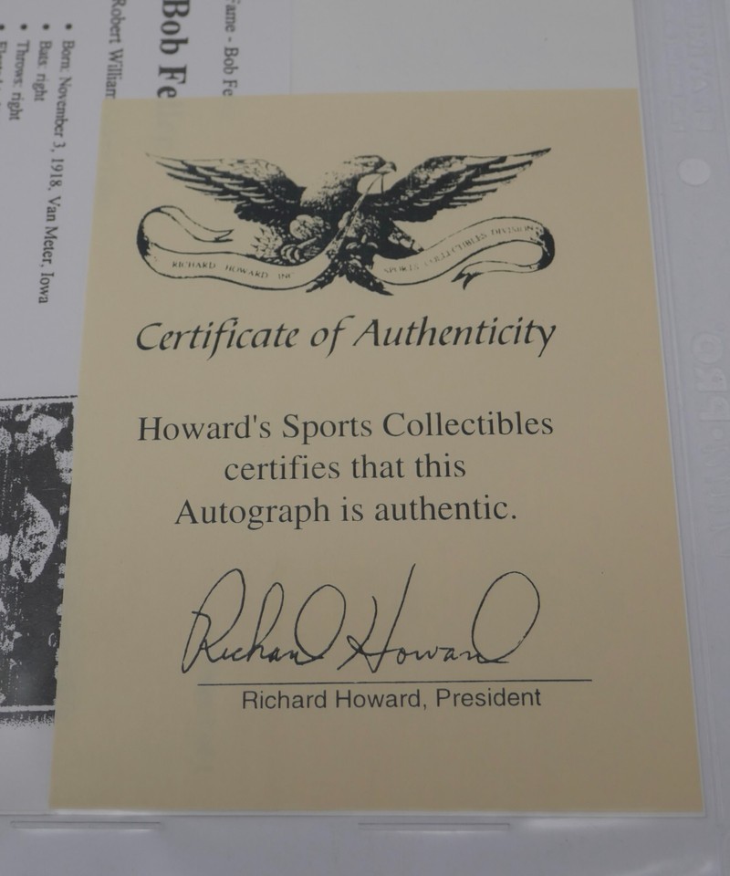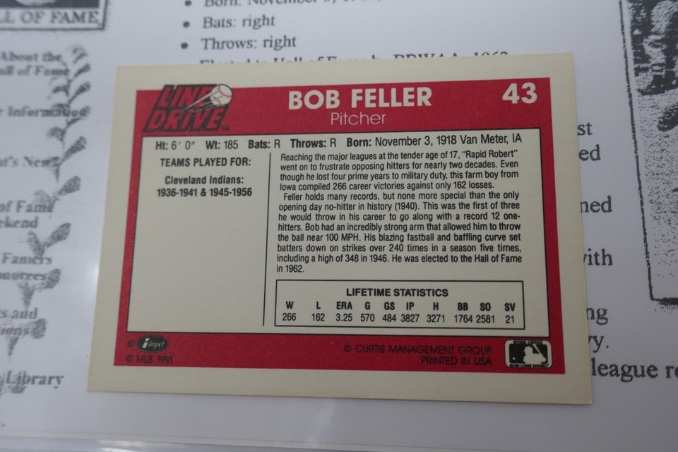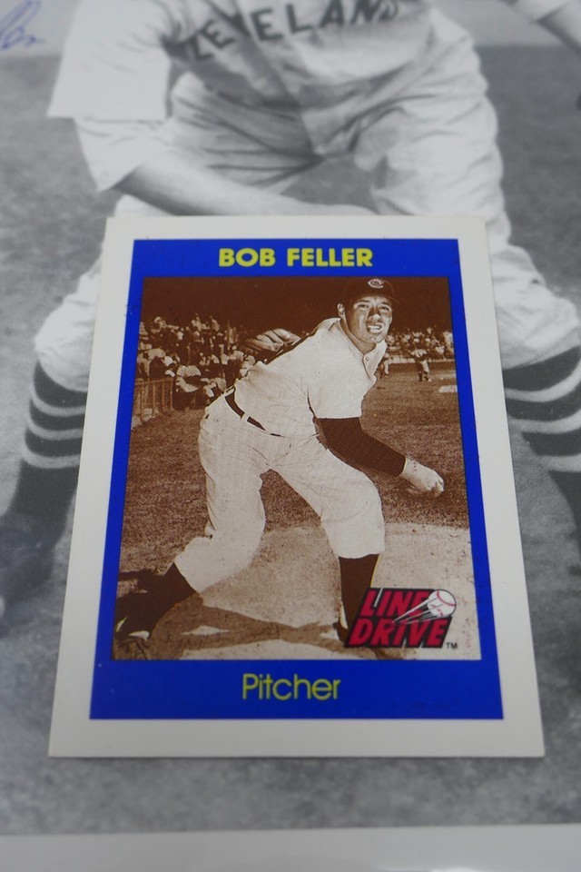 Bob Feller Autographed 8x10 Black & White Photo w COA and 1991 Line Drive Card
