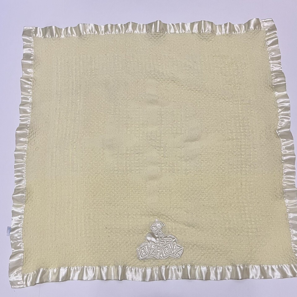 Kidgets Yellow Satin Trim Baby Security Lovey Blanket 31”x30”