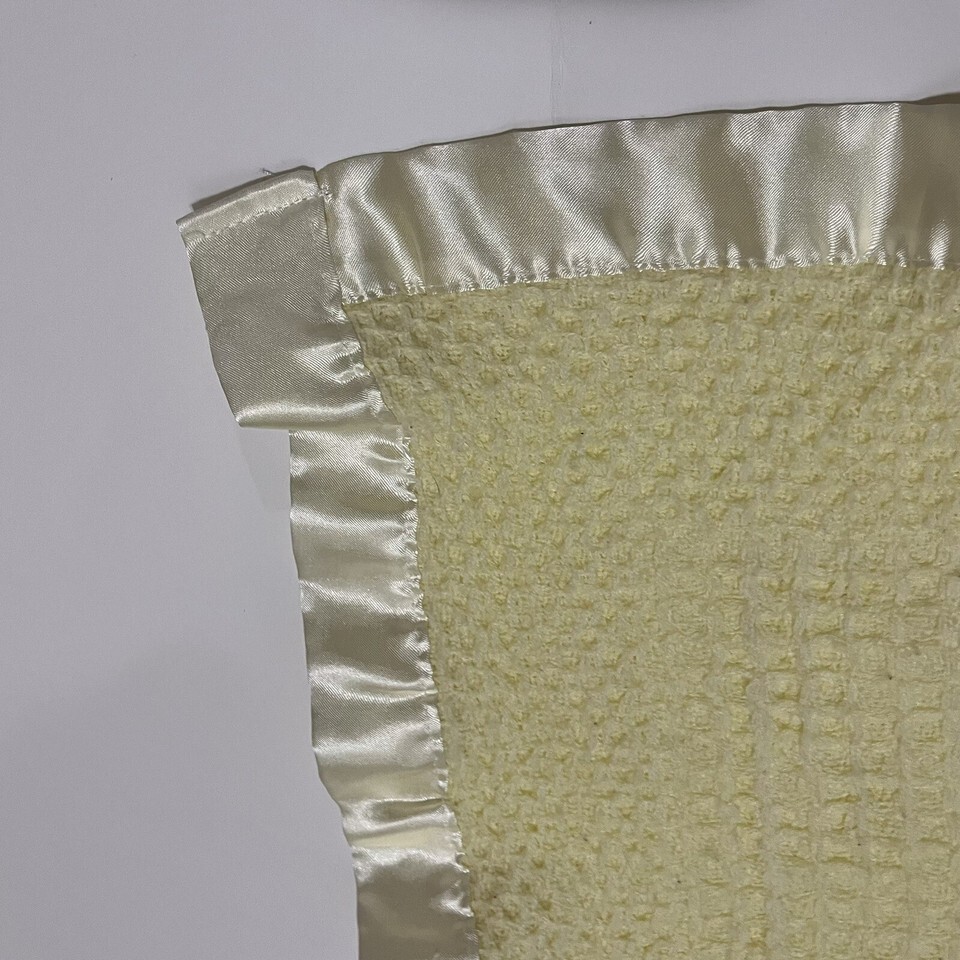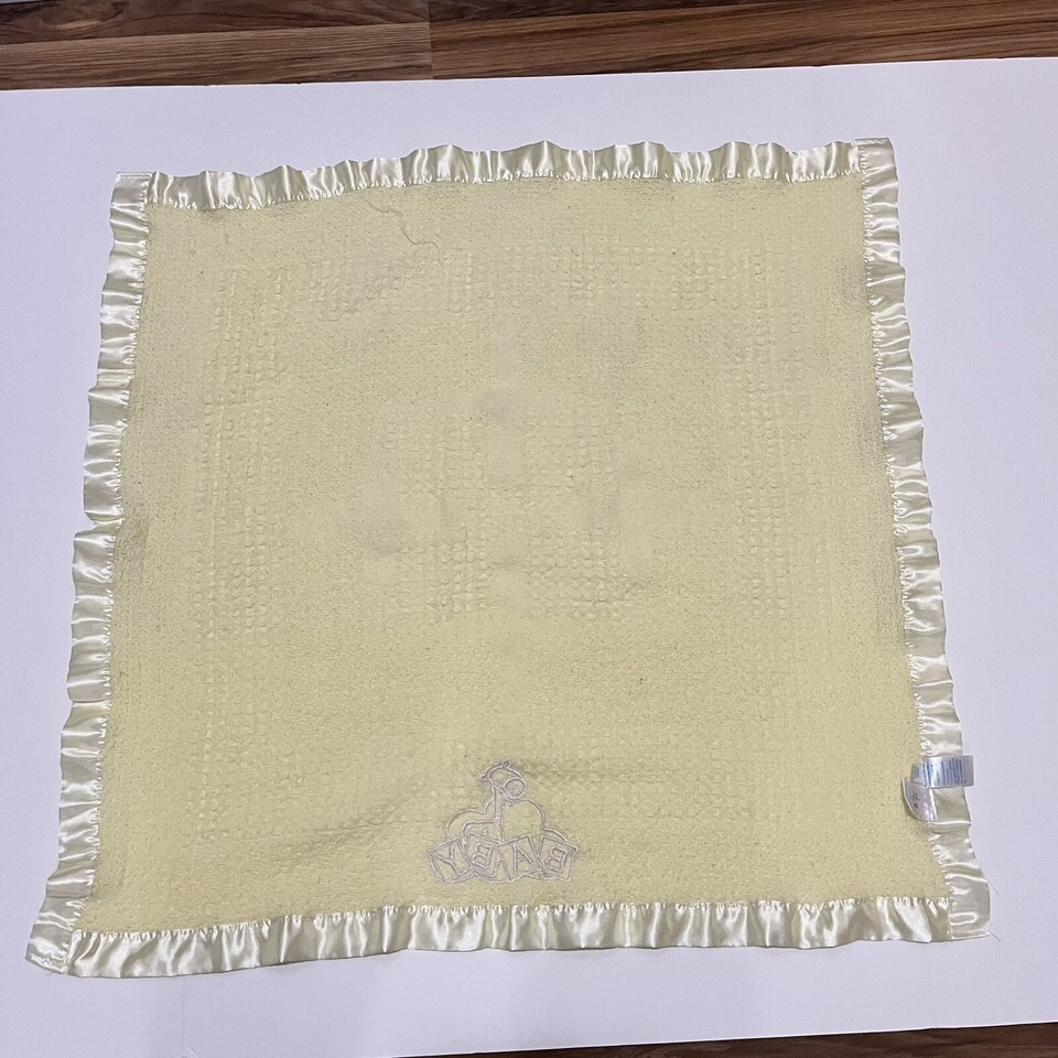 Kidgets Yellow Satin Trim Baby Security Lovey Blanket 31?x30?. CLOTHING AND FABRIC ITEMS: All clothing and fabric items have been steam cleaned and/or washed per standards.