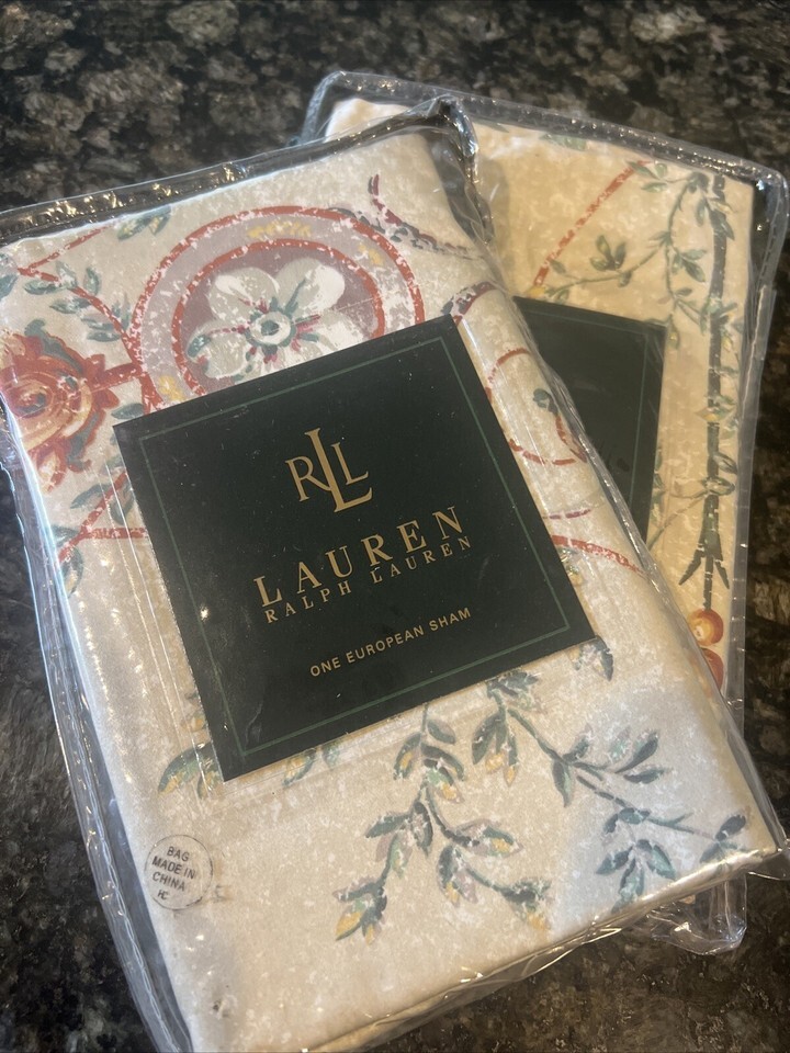 Ralph Lauren VILLANDRY Floral Sateen Cotton European Pillow Shams 1 Pair New Vtg