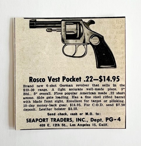 1959 Rosco Vest Pocket Pistol .22 Advertisement Firearms Guns Seaport DWN7