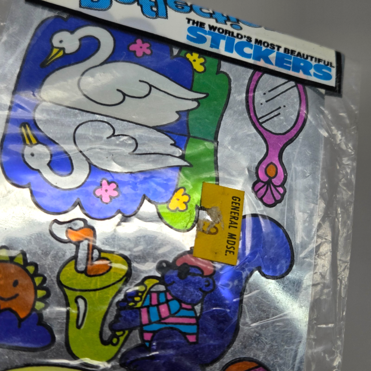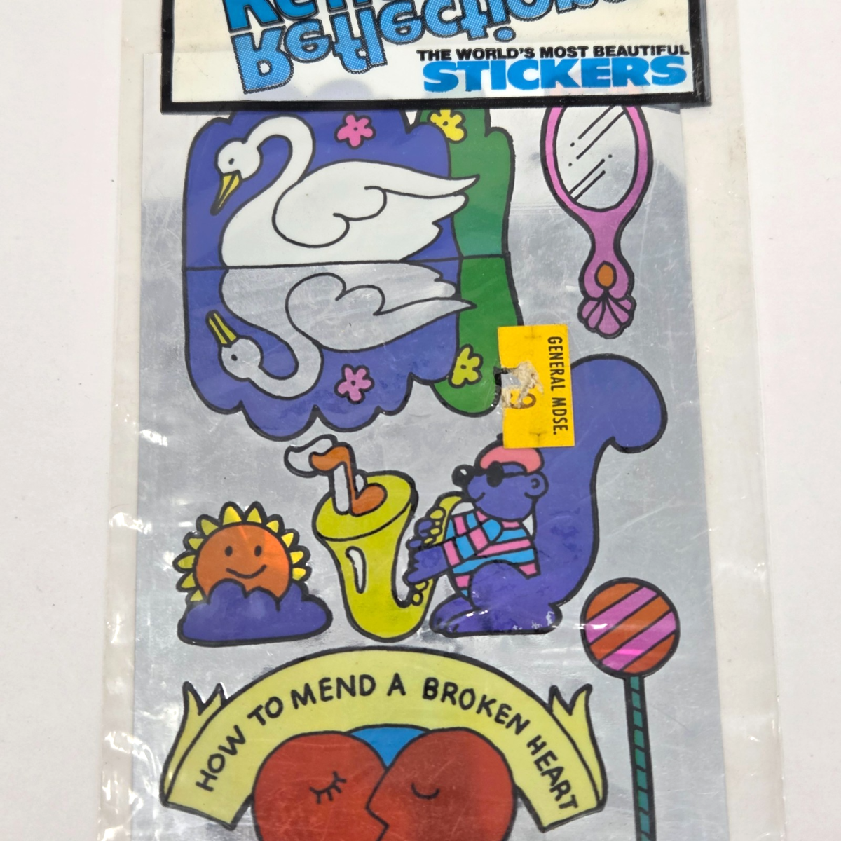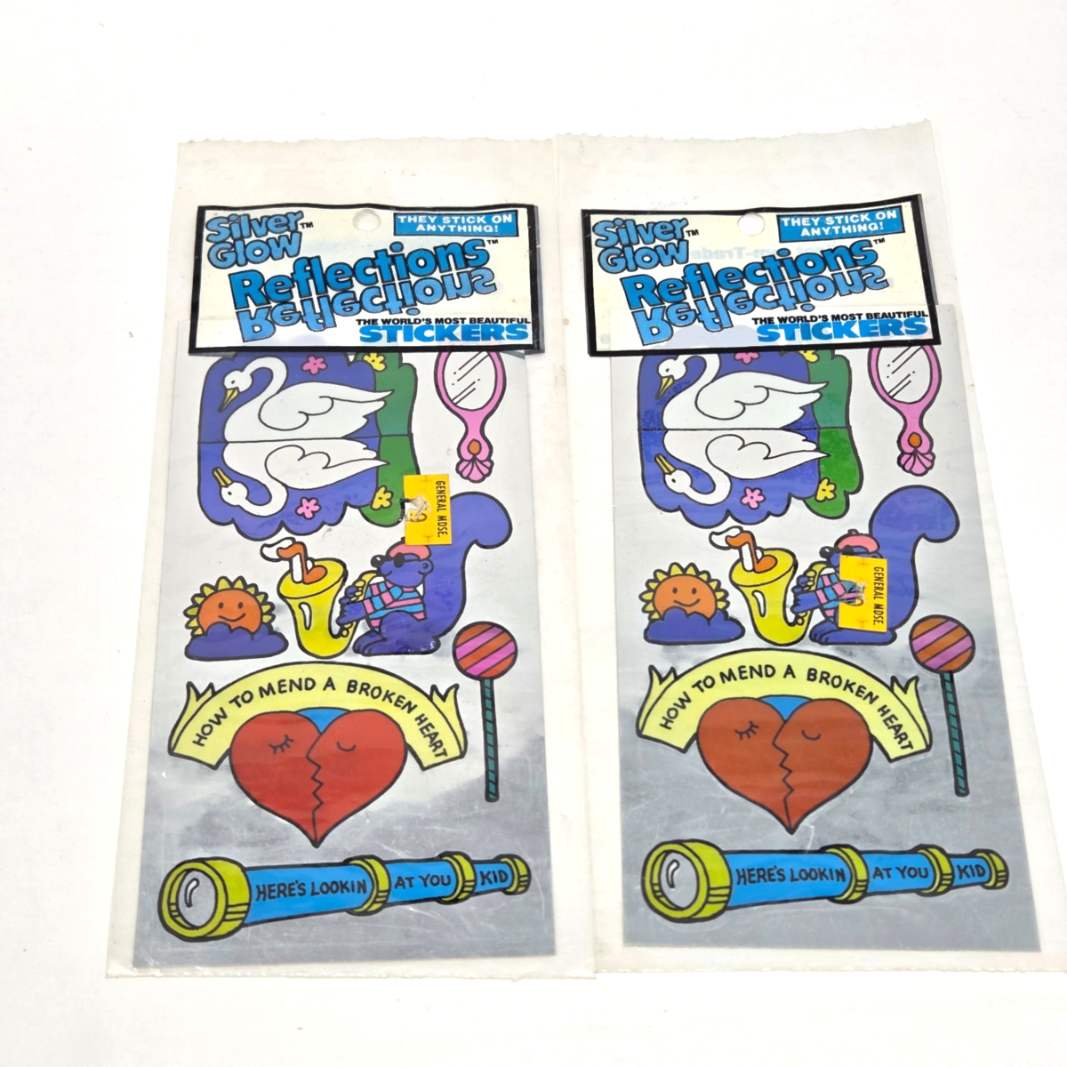 VINTAGE 1983 GORDY SILVER GLOW REFLECTION STICKERS NEW SEALED MIRROR HEART SWAN
